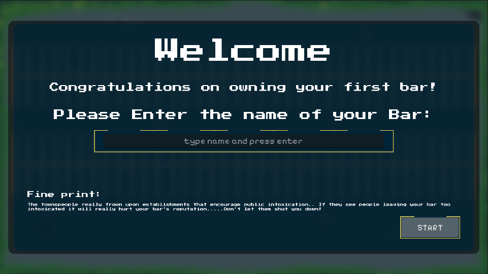 Congrats on owning your first bar! Be warned that the townspeople do not like establishments that encourage public intoxication. Its better to keep your Patrons in the bar than to let them roam the streets. Don't let them shut your place down!